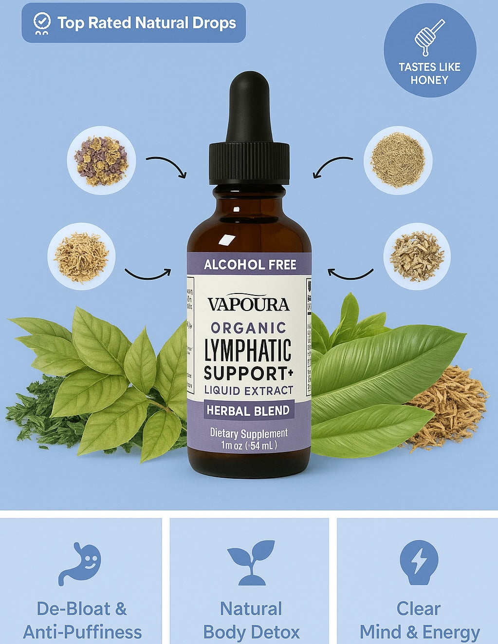 Vapoura’s natural drops help your body flush out trapped fluid and restore healthy flow, so you wake up lighter, de-puffed, and full of energy finally feeling comfortable in your own skin again.